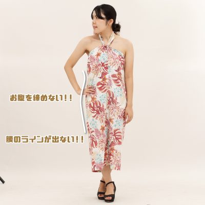 難点を付けるとしたら、スパッツやタイツにひっかかって生地が前に寄ってしまうこと、せっかくのスリットから見える足がタイツ、ということですが(笑)でもこの商品は夏がメインの商品なので文句ありません。