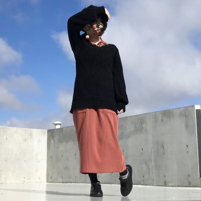 スカートかあ、丈も長そうだしチビ(152cm)の私には…と思っていましたが、この着方が目につきました。