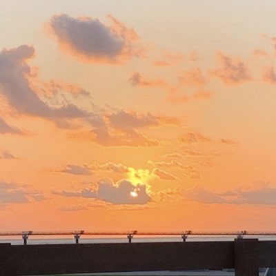 (こちらの夕日はいつも見るよりも大きく見えました♪ウミカジテラスの店員さんも思わず外に出て写真を撮るほどに♪まさに奇跡☆)