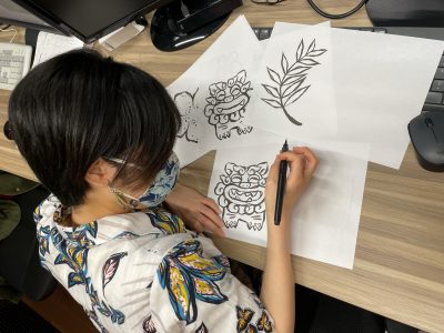 シーサーめっちゃ笑ってる~~!!自分で描きましたけど、これめっちゃかわいい。実はシーサーの絵はあまり描いたことがなかったのですが、自分ってこんなかわいいシーサー描けるんだ~と初めて知りました。