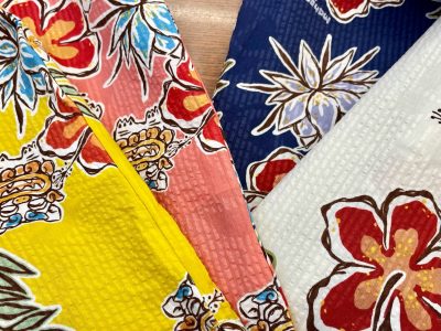 「サッカー加工生地」のかわいいシーサー柄【ぶぎうぎアイランド】~こうして出来ました~