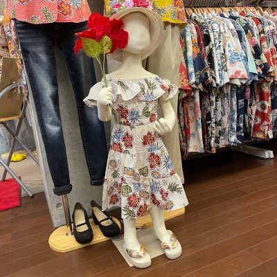 そしてこちらdesignerきんじょうとしても初のキッズオフショルダーワンピース。こちらも実はスタッフの意見で「キッズワンピース作ったらかわいいじゃん!!」という事になり、そうなんだ~と目からウロコでした。