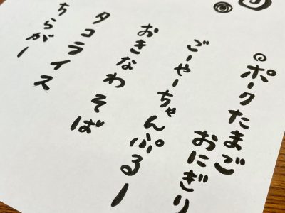 商品では「お品書き」になっていますが、この時は「ライス スープ付」と「ランチタイム10:00~17:00」でした。