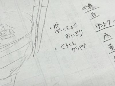モチーフ候補に「グルクンの唐揚げ」がある…描かなくて良かったです、たぶんめっちゃ難しい!笑