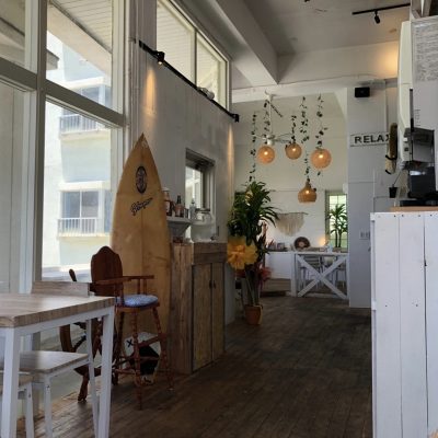 付近は北谷ともあって外国人住宅街っぽい感じで、店内はハワイアンチック🤙すぐ側には海🌊があり広い窓から一望しながらお食事が楽しめます😃