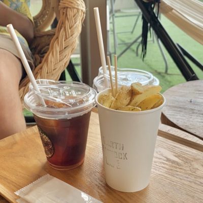 ハンモックに揺られてコーヒーとフライドを注文😋🍟☕️