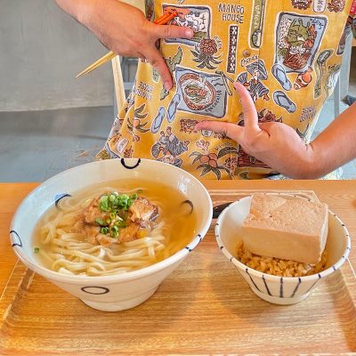 進化系沖縄そばという事で、メニューも少し変わっており、友人は『島豆腐とソーキそばセットの(元味)』にし、私は『島豆腐と田仲そばセットの(真味)』に決めました☺️