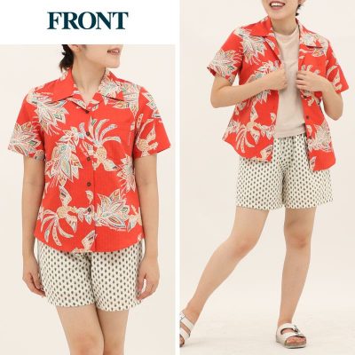 シンプルなコーディネートでもアクセントとして映える沖縄のアロハシャツ♪