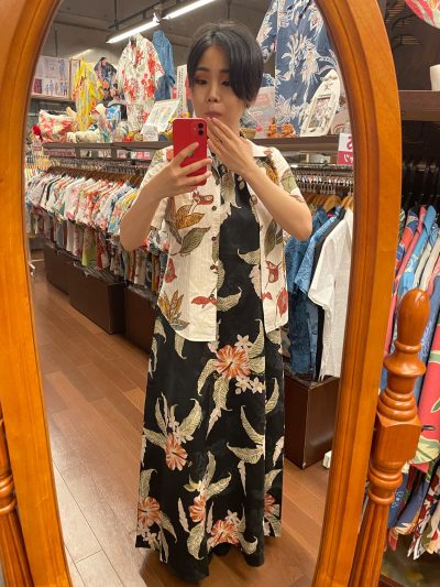 試着中に配達業者の方が来て、ちょっと恥ずかしかったので慌てて元々着ていたかりゆしウェアを羽織りましたが…