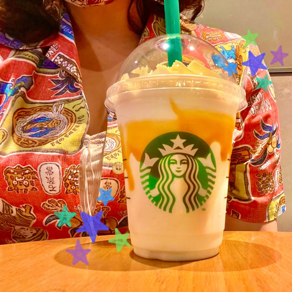 かりゆしウェアを着て、スターバックスの沖縄限定フラペチーノを飲みました♪