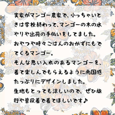 沖縄のマンゴーとハイビスカスのパワフルなデザインで、着るだけで元気になれちゃいます☀️♪