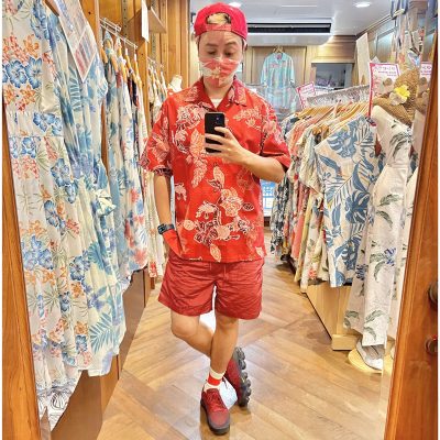 6:「ドラゴンハイビー」柄を使った「レッドコーデ」❤️