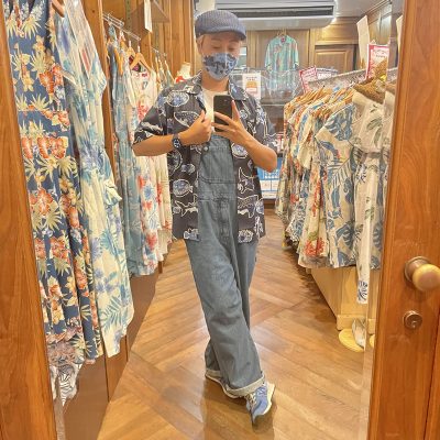 2:「シーサーめんそーれー」柄を使った「ブルーコーデ」💙