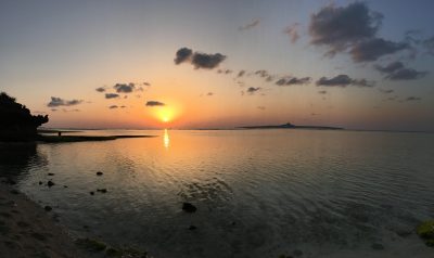 ビーチ正面には伊江島タッチューがどーーーーっんと見え、そこに沈んでいく夕日を眺めるのもオススメです♪