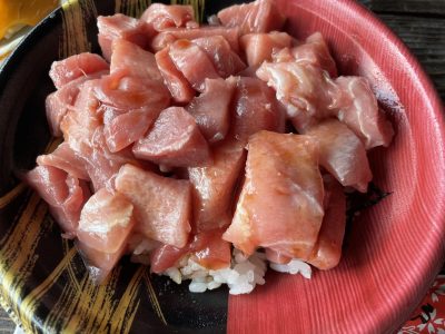 外の席でお魚センターで買った美味しそうなものを他の人が食べているのを見て、私もつられて、マグロ丼を食べました☺️♪とっても美味しかったです ( ›◡‹ )♪