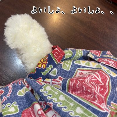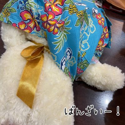 くまちゃんたちには90㎝のキッズかりゆしウェアを、