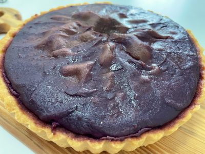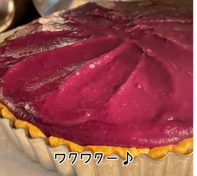 出来たタルト台に、紅芋クリームを入れて、また焼きます🍳!