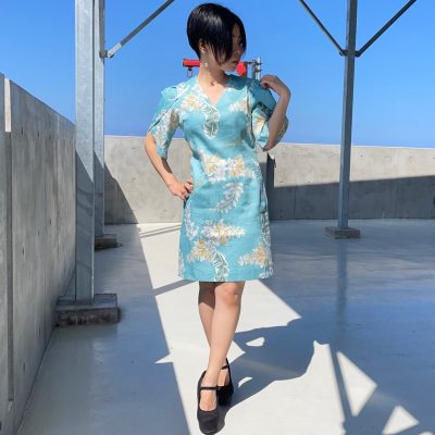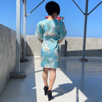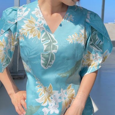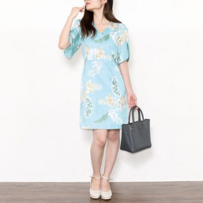 マンゴハウスに多いリゾートチックなふんわり感はこの【ロイヤルデイゴ】にはありません。身体にフィットするスマートで特別な気分のためのドレスで、余計なディティールが無く柄の良さと自身のスタイルを際立たせるシンプルライン。