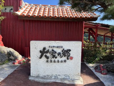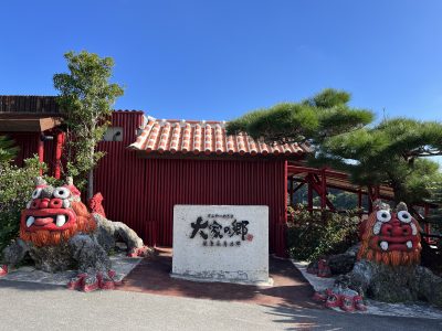 大きいシーサーがどっーーーん!と出向かてくれて、「大家の郷(うふやーのさと)」という看板。テレビやYouTubeで見たことあるー!とテンションと期待と空腹度が上がりました!