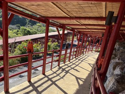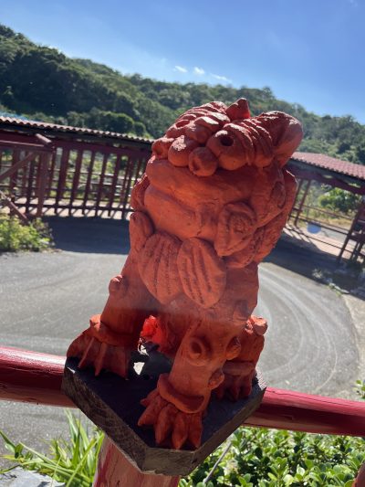 うふやーの郷は広く、お食事処までは遊歩道があり、たくさんのシーサーと鳥居のある道を進んでいきます。
