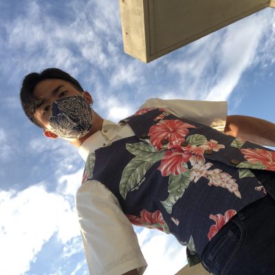 僕の大好きな風景柄! 僕の大好きなローン生地! 沖縄の海、ヤドカリにアダンの木、そしてハイビスカス。見るだけで沖縄を感じれるので、着るともっと温かく明るい楽しい気分になりますよ♪