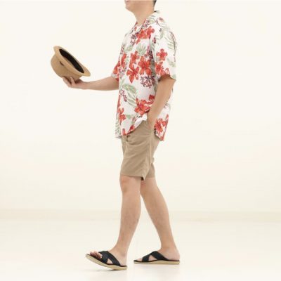 『かりゆしウェア(アロハシャツ)』とボトムスは『スラックスパンツ/スーツパンツ』で『革靴』と言うスタイルが一般的で、失礼に値しないですし、間違いのない着こなしなのです。