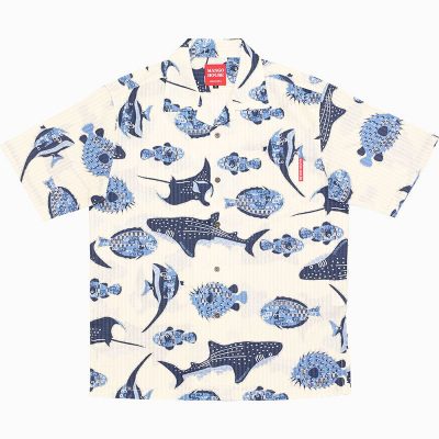 パッと見だとアロハシャツに見えますが、よーく見ると全部沖縄らしいデザインなんです♪