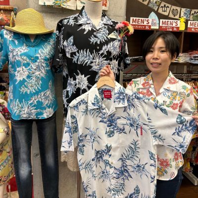 さて、商品ですがメンズ(レギュラーフィット開襟シャツ&スリムフィットボタンダウンシャツ)とレディースかりゆしウェアございます♪