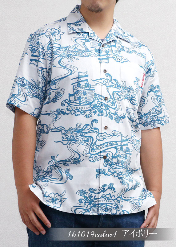アロハシャツ-かりゆしウェア【ドラゴン進貢船(開襟シャツ) メンズ】