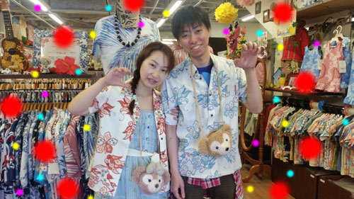 チョイスしたかりゆしウェアはおそろ柄の色違いで