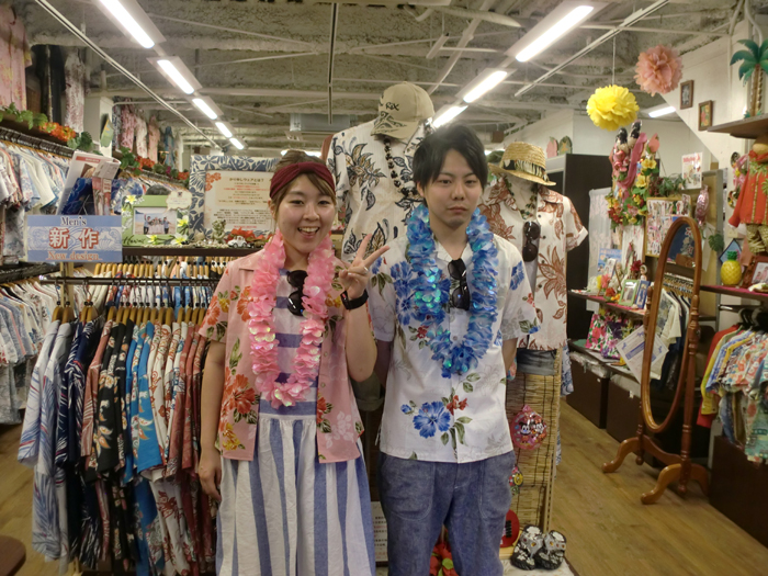 可愛らしいピンクカラーと、爽やかな白地にブルーのハイビスカスが華やかで