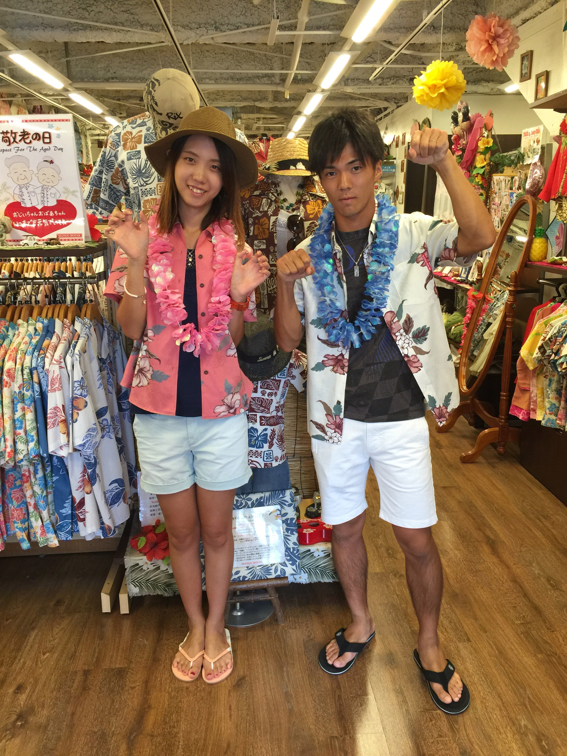 今日お帰りとの事ですがぜひ地元でも、そしてまた沖縄にいらした際は仲良くおそろいで着て当店に遊びに来てくださいね(o^^o)