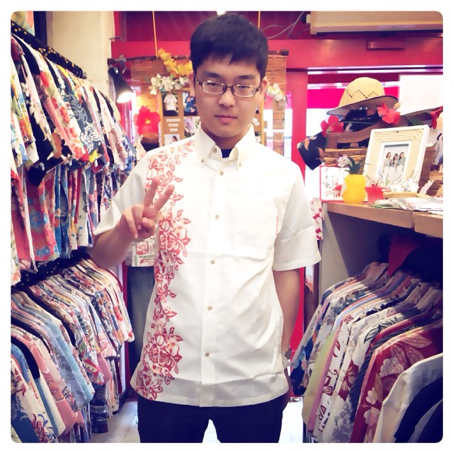 思い出に沖縄のかりゆしウェアもほしい♪♪とのことで一緒にお選びさせて頂きました^^