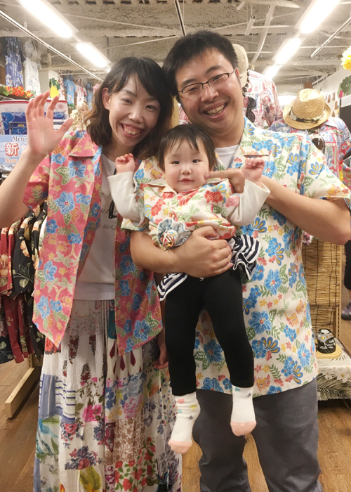 今回少し余裕を持って100cmのかりゆしウェアを着用!