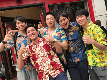 前日にかりゆしウェアを選ばれて、二次会会場へ行く前にお友達も連れて再来店!!