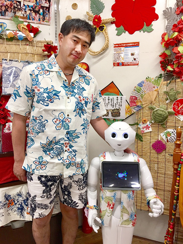 かりゆしウェアを求めてご来店。東京からお越しのお客様! 本店:島野