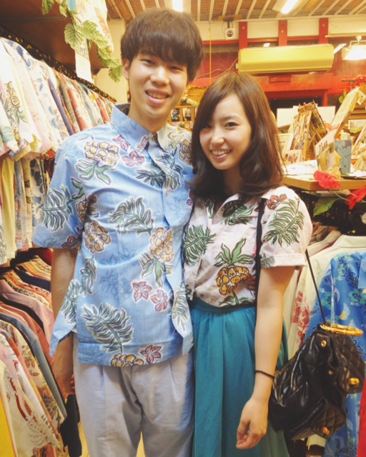 ちなみに彼女さんの着ているシャツは「アダン総柄/アイボリー/開襟シャツ」♪♪
