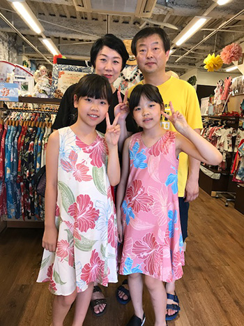 韓国からお越しのご家族! 仲良し姉妹はオシャレさんで色々試着しましたが最後はやっぱりおソロの色違いワンピに決定🌺 可愛らしい娘さん達にご両親も幸せですね! 沖縄観光楽しんで下さい IMG_2756泉