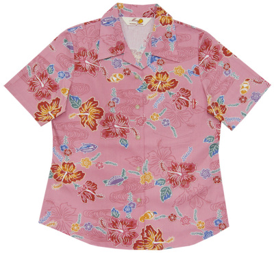 普段からピンク系の服を着ているそうで、最初はたまには違う系統のものを、とご友人とおそろでボタニカルハイビーの白地に赤を選んでいたのですが、やっぱり好きな色の方がイイ!という事でピンクのシャツに。