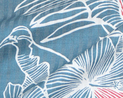 ハイビスカスとヤンバルクイナが単色調であしらわれた