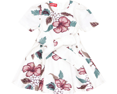 娘ちゃん→ジャガードハイビー/アイボリー/キッズワンピース
