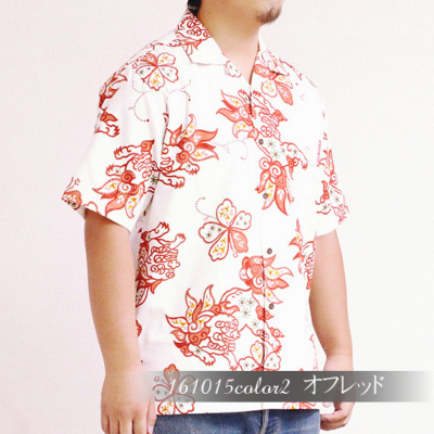 最初はベースが赤系の線画クイナハイビーを着ていたのですが、