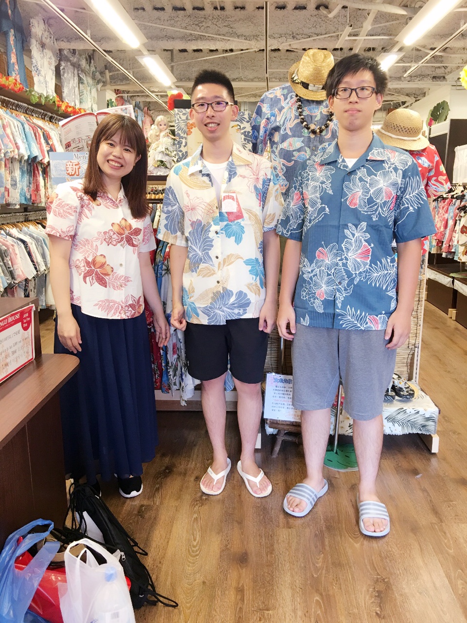 右の方が着ているのが私のデザインしたかりゆしウェア