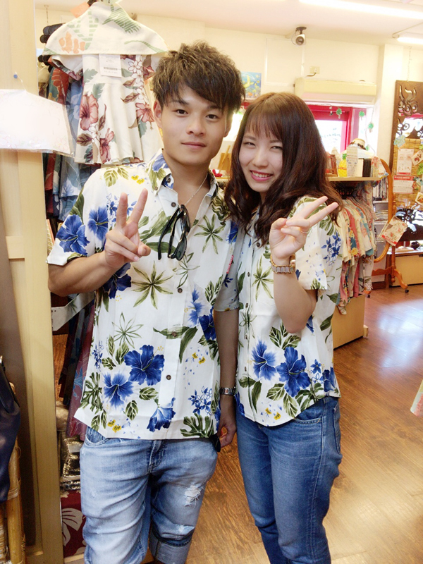 お揃いで大人気!ボタニカルなハイビ柄かりゆし♥