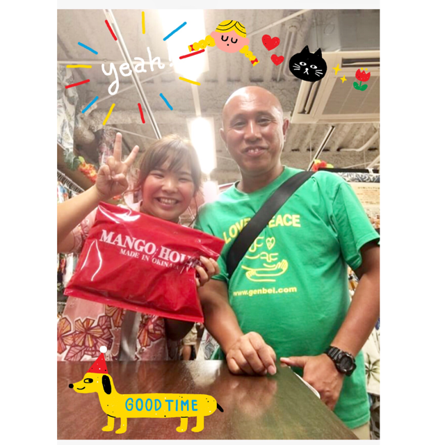 お客様の写真館2025.12.11沖縄に滞在中、2回もマンゴハウスへ!かりゆしウェアコーデを見せに来てくれました♪