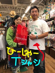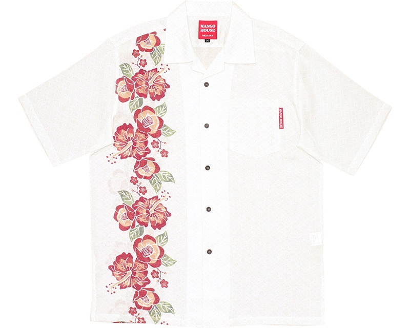 かりゆしウェアは持っているそうですが、マンゴハウスのデザインは初めてで、デザインは勿論ですが、生地感も気に入って頂きました!!