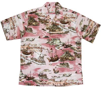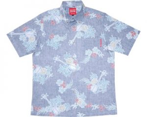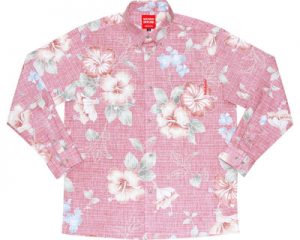 旦那さまは長袖アロハの紅型ハイビーレッドのボタンダウンシャツ♪