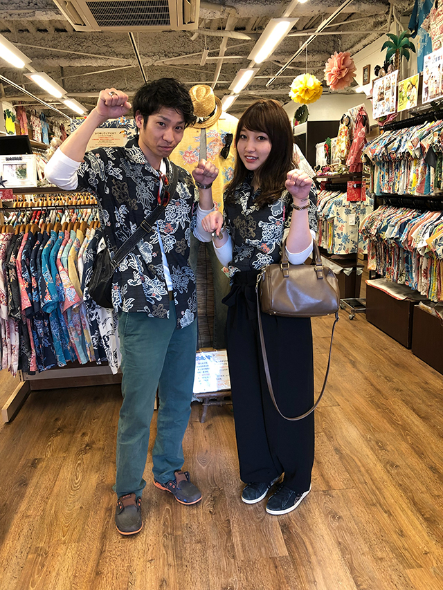 こちらも仲睦まじく、おそろのかりゆしウェアを選んでハイ!シーサー(*^_^*)