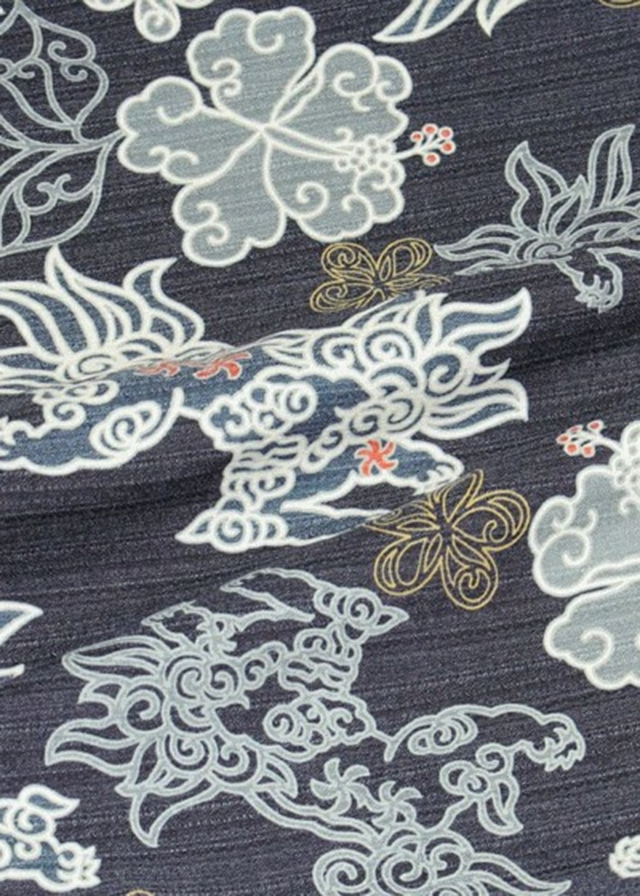 お二人が選んだ柄は、シーサーとハイビスカスの花が舞い踊る様子を和テイストで表現した和柄ハイビシーサー柄!