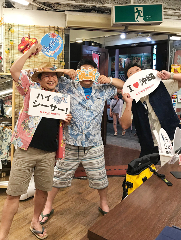 ノリノリで撮らせていただきました!アロハシャツが似合う三人組!